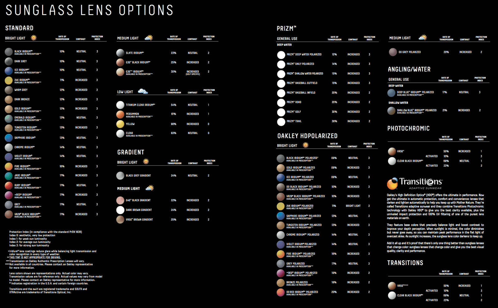 Oakley Light Transmission Chart